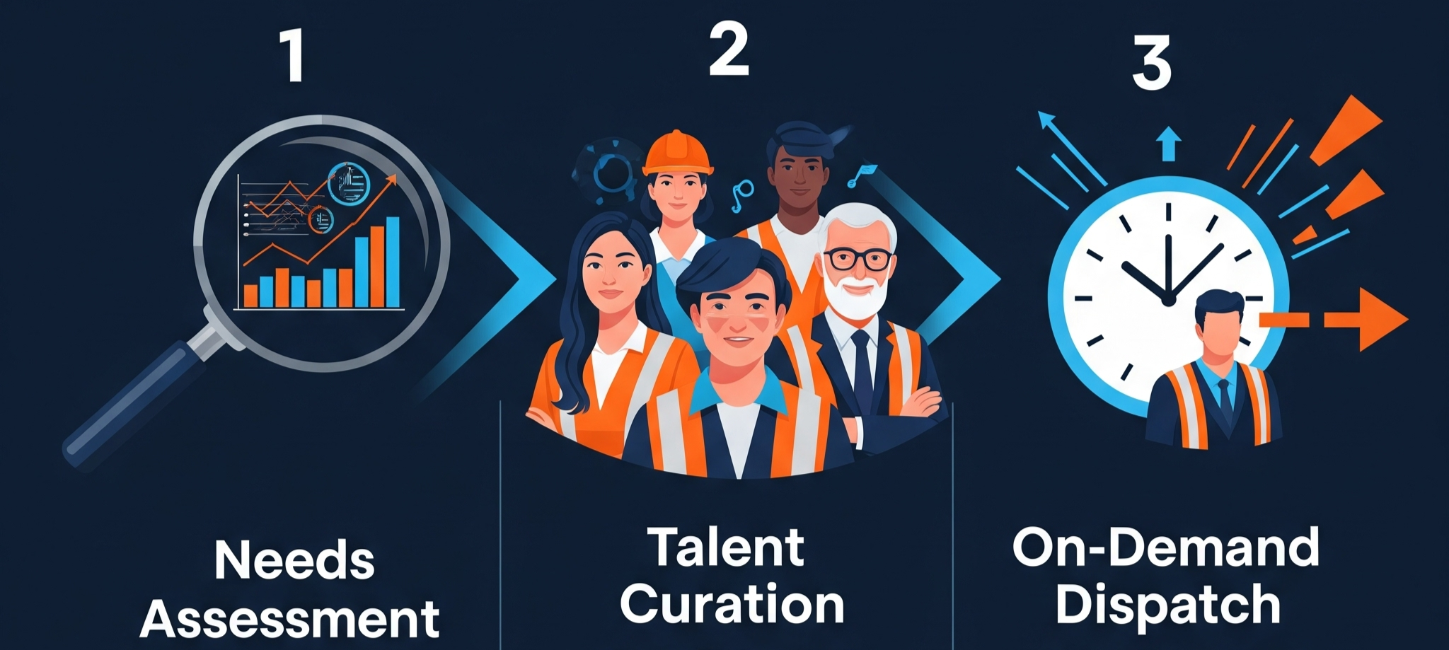 - On-Demand Dispatch: When an urgent need arises, we dispatch qualified personnel from your custom pool, often within hours.